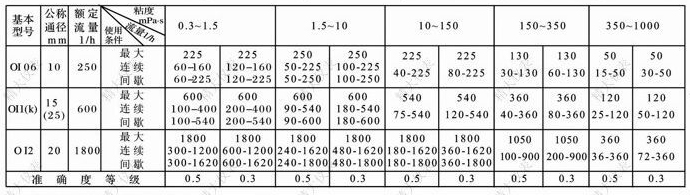 備注:1.測量冷水的流量范圍,連續運行時大流量取0.3-1.5mPa.s欄中最大流量的50%;最大流量取欄中最大流量的70%;