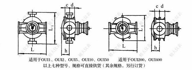 進行加熱,使介質融化并保溫。但由于安裝橢圓齒輪流量計處不允許直接通以蒸汽(防止損壞流量計),為此我公司設計了OUI系列產品,即在OI系列流量計殼體外增加保溫夾套,可用熱水、熱油或低于200℃的蒸汽通入保溫夾套,使流量計(或過濾器)內已凝固的介質融化,并保持一定溫度,從而保證流量計能正常運行。橢圓齒輪流量計前安裝的過了過濾器可采用保溫夾套的形式,用戶需要可特殊訂貨。保溫夾套公稱壓力為0.5MPa。