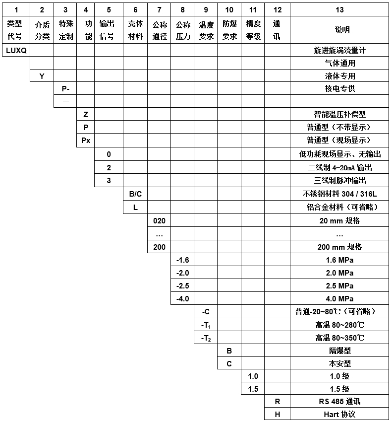 ■旋進旋渦流量計產品型號標記
