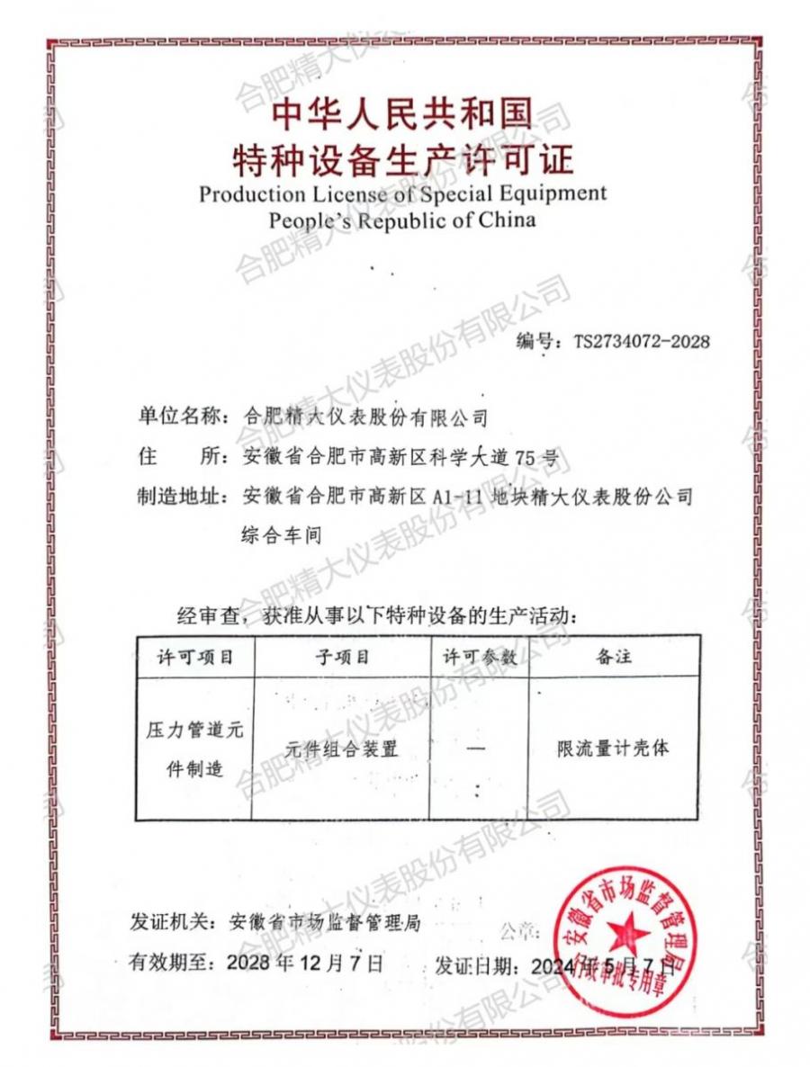 四年歷程看似不長,但對于合肥精大儀表股份有限公司而言,承載著一步一個腳印的成長與超越。 自2020年首次獲得特種設備壓力管道元件制造許可證以來,合肥精大始終堅守合規合法的運營之道,以匠心精神雕琢每一道工序,以創新思維引領行業發展。如今,這份堅持與努力再次得到了官方的認可與肯定——2024年,合肥精大順利通過換證審核,并于2025年5月21日,在市監局領導的嚴格監督下,成功通過了由外省特檢機構進行的證后監督檢查,全部檢查項目合格,彰顯了精大儀表的非凡實力與卓越品質!