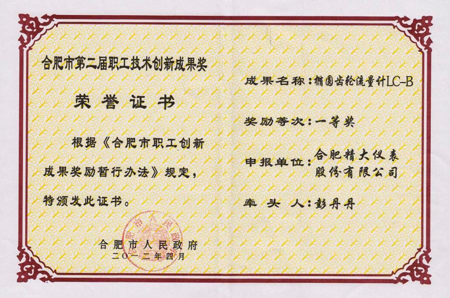 合肥市職工創新成果一等獎