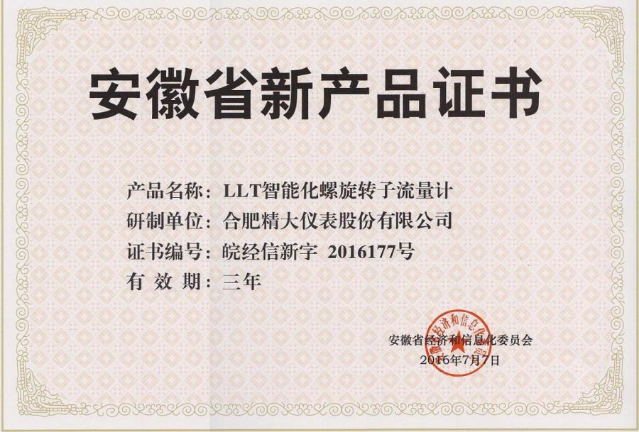 安徽省新產品證書(LLT型)