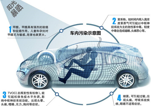 車內(nèi)空氣污染主要有三大來(lái)源: