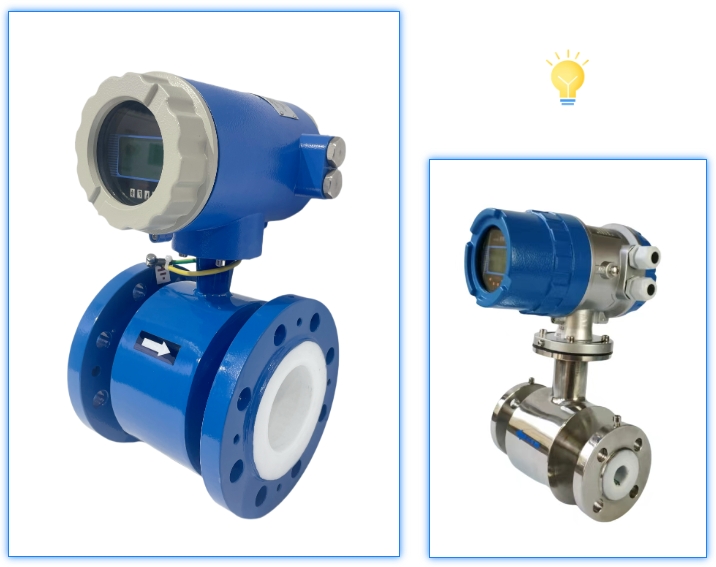 原理:基于法拉第感應定律,這些電磁流量計在流動流中產生磁場。當導電液體流過該磁場時,會產生電動勢,該電動勢與流速成正比。測量電壓并用于計算流量。