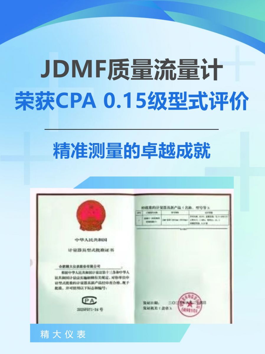 JDMF質量流量計榮獲CPA 0.15級型式評價:精準測量的卓越成就